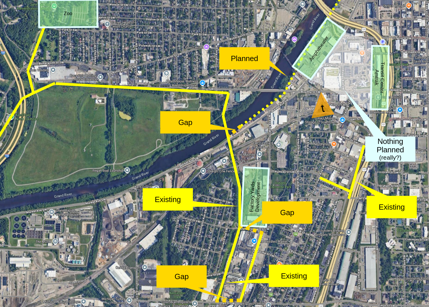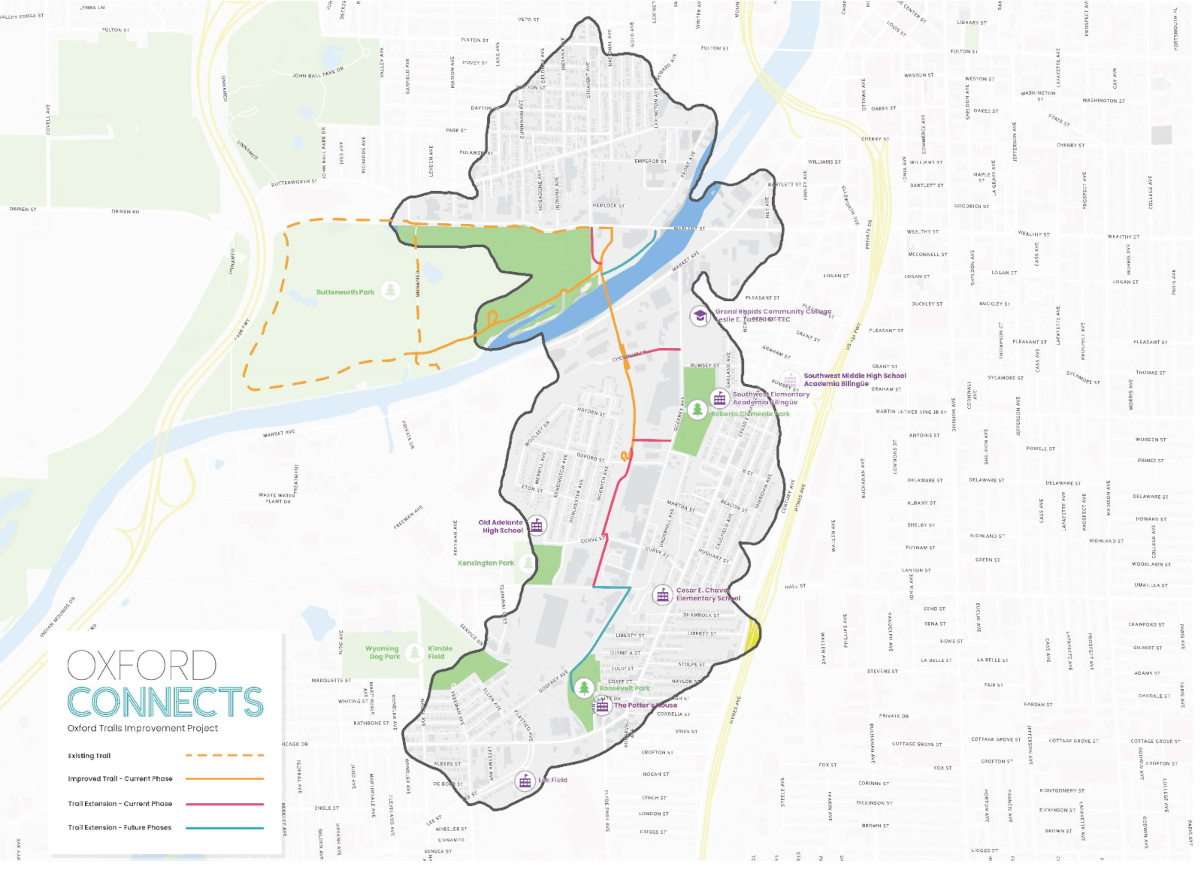 For years now the Oxford Trails has been a hidden gem, a fun extension of the Millennium Park and Butterwork Landfill trails, and a rare pedestrian and cyclist oriented river crossing. But now the contracts are out to realize its potential as a real bit of infrastructure connecting the West Side and the Triangle district with all its venues and amenities to the Black Hills and Roosevelt Park neighborhoods. And an opportune time as Godfrey Ave sees multiple developments and renovations bringing nearly five hundred (500) residential units to the corridor. The trail, which now connects the West Side all the way to the
