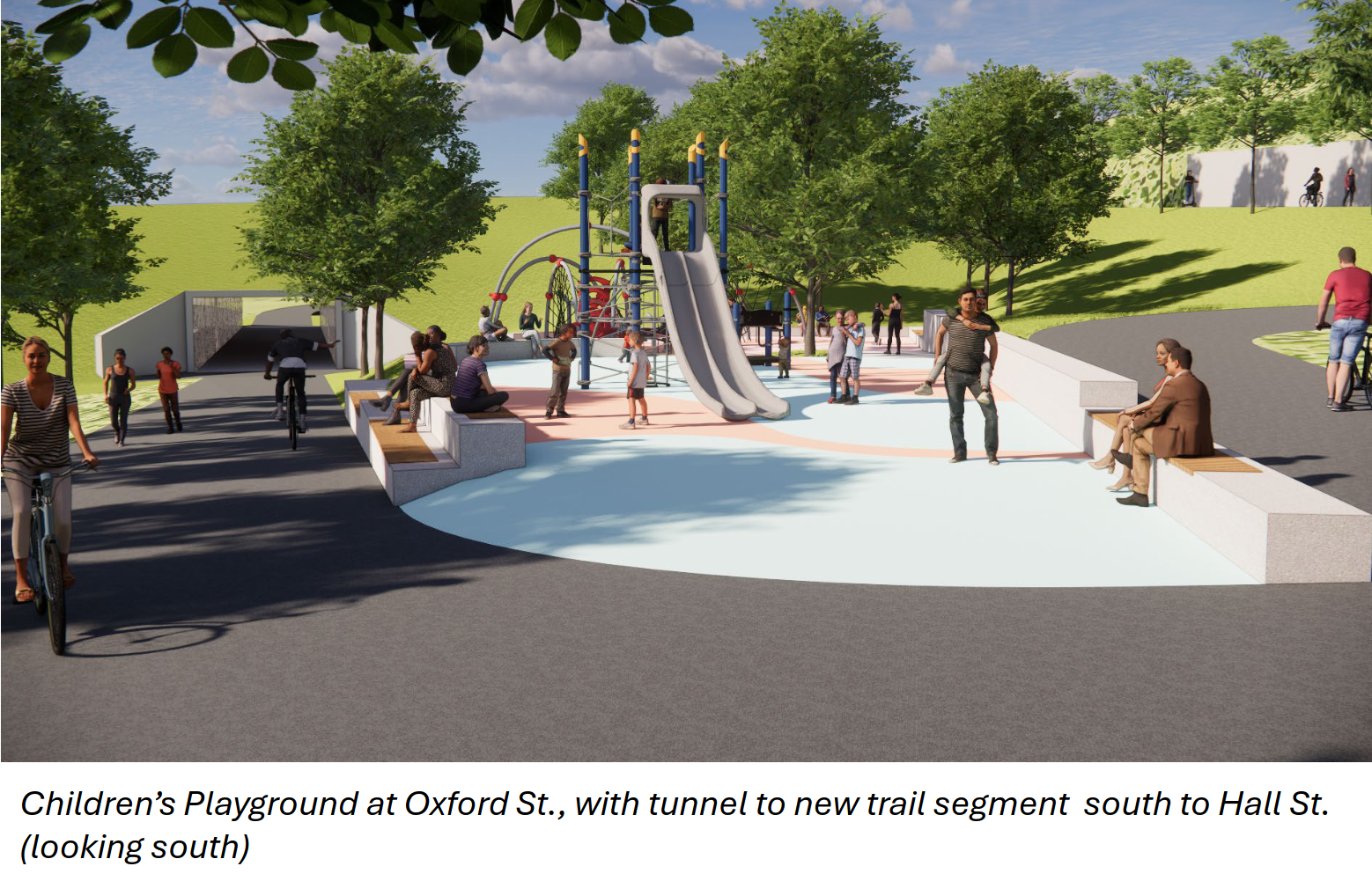 The extension of Oxford trail is a transformative project, by which we mean it has the potential to change the day-to-day lives of urban residents, and far more so than the existence of an amphitheater or stadium. There is now a bicycle corridor that goes somewhere! This is the first of its kind in the city.
